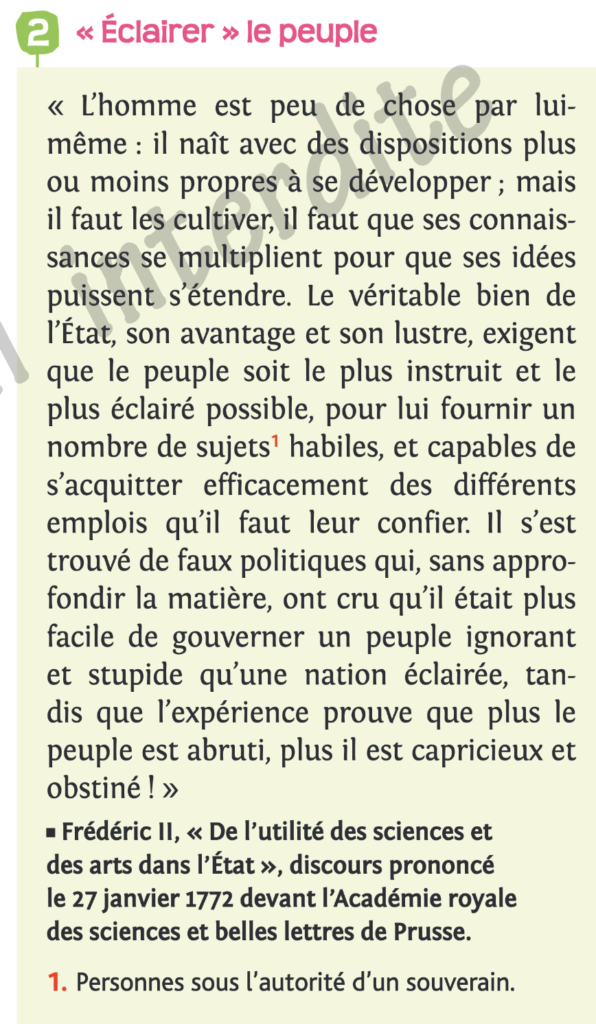 Frédéric II, roi de Prusse et despote éclairé. 18 points, coefficient 1
