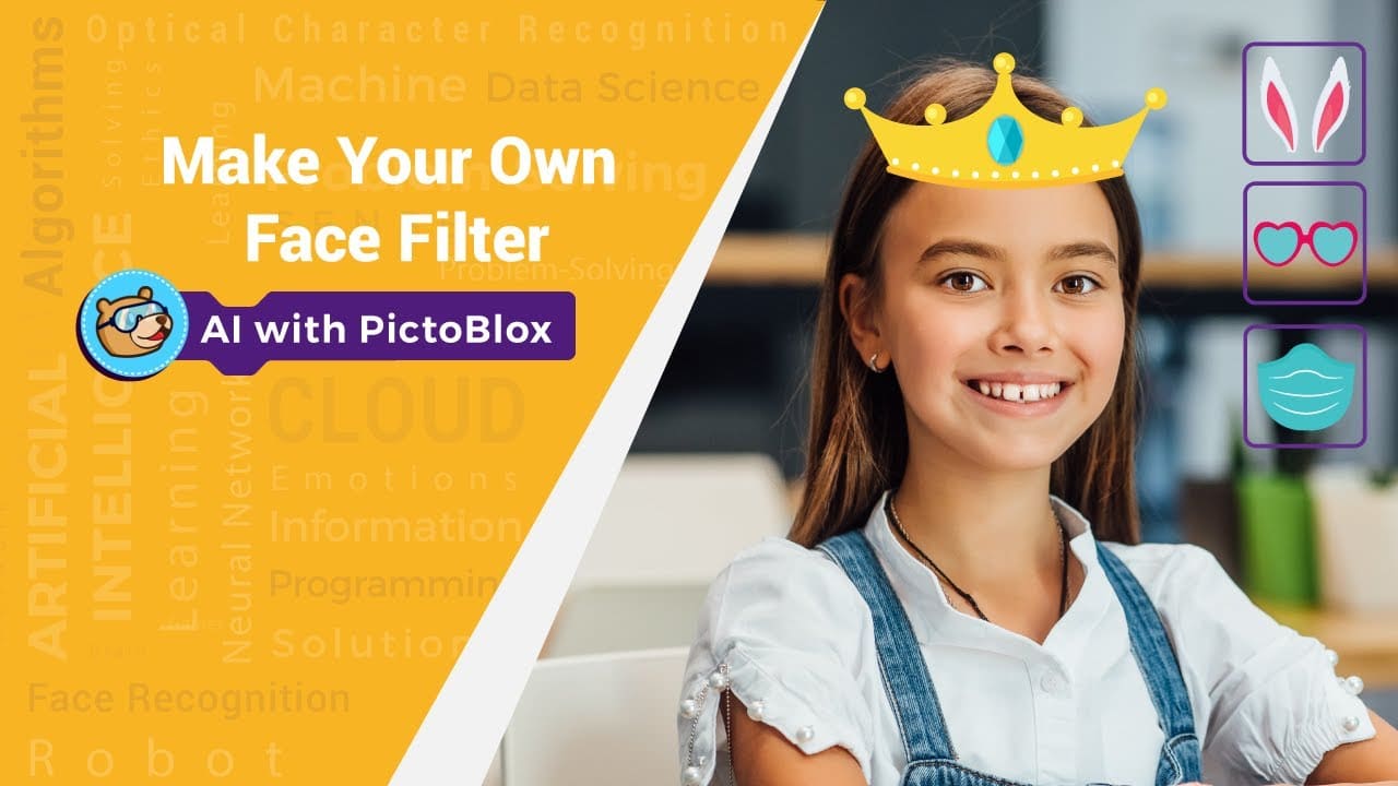 - The filter will also rotate, as you rotate your face on the camera. You will implement all of these using the PictoBlox’s Face Detection extension.